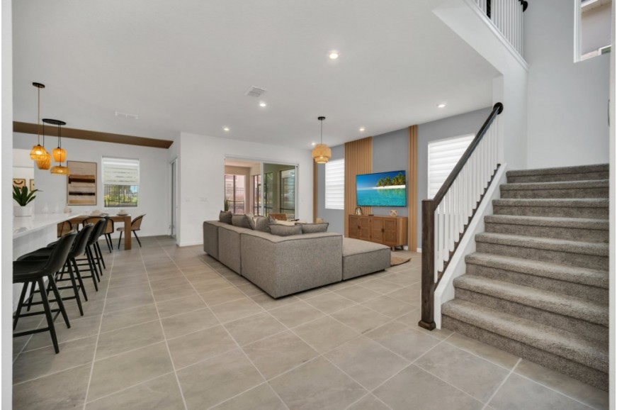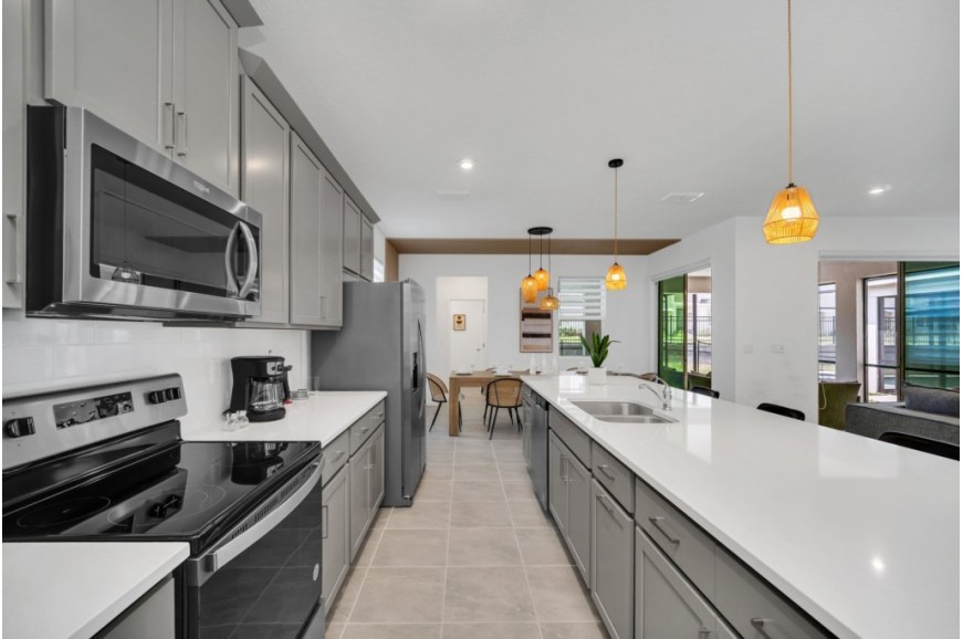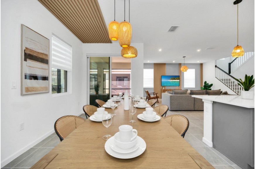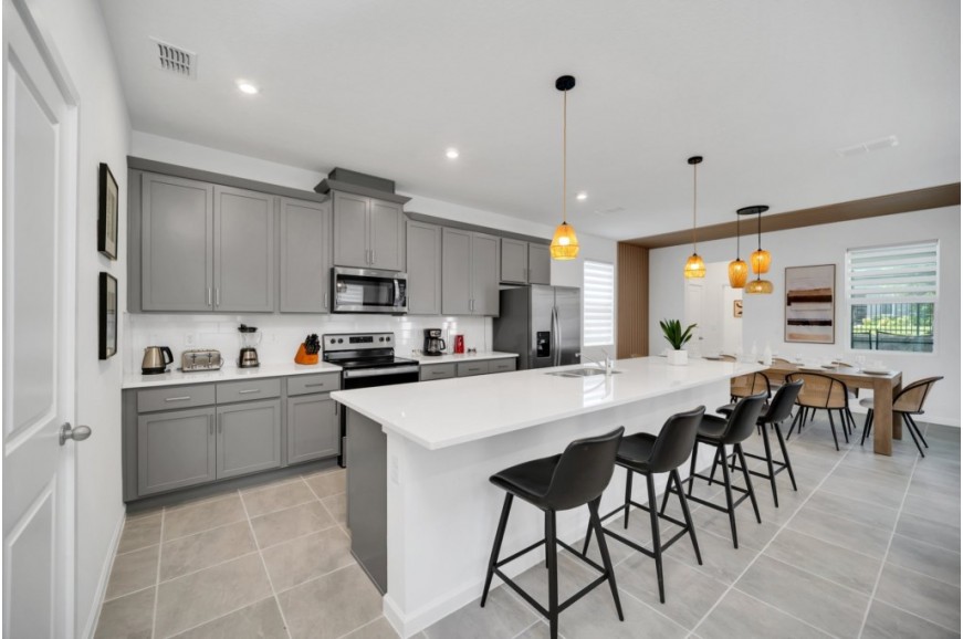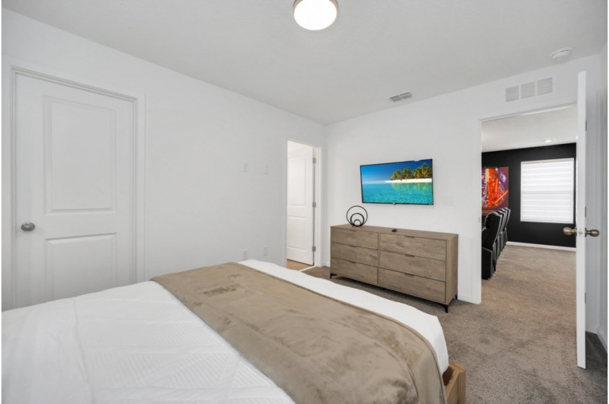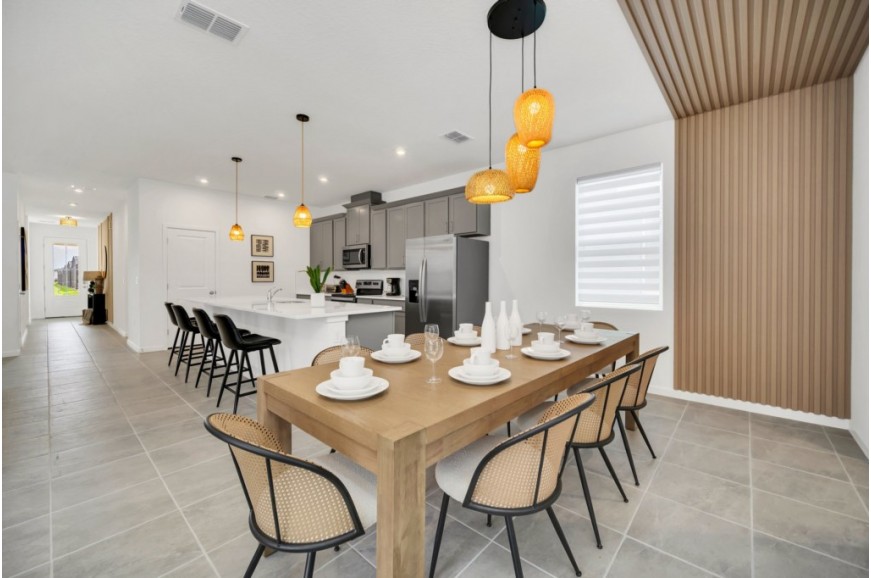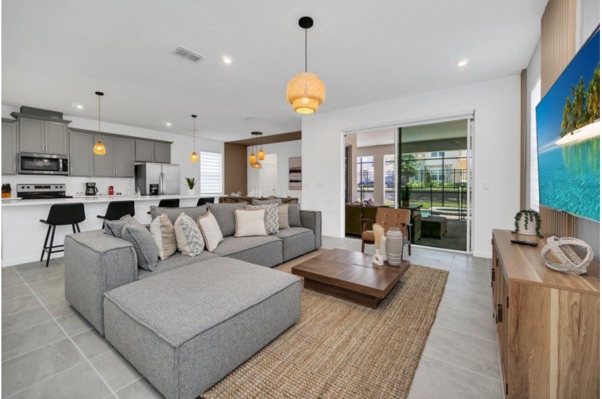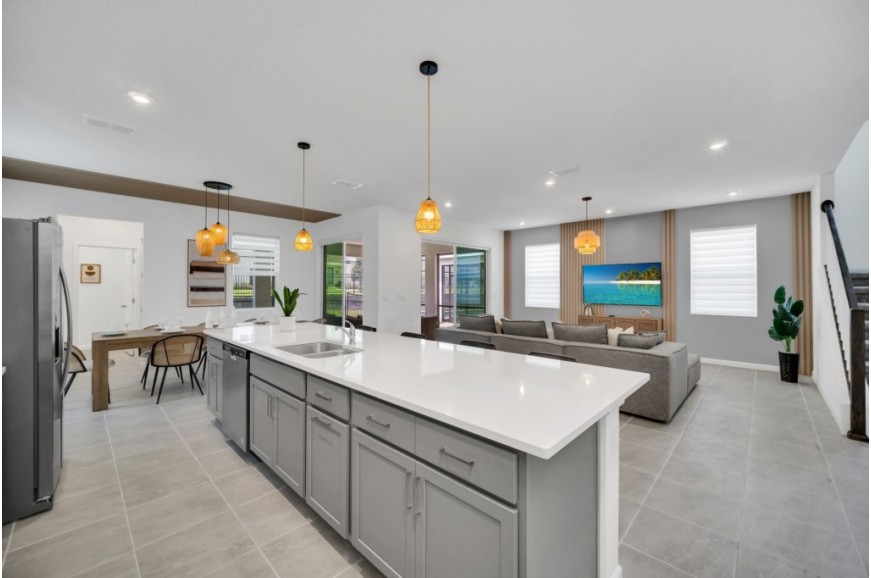 Solara Resort - Kissimmee, Florida is an upscale community currently under development just 7 miles from Walt Disney World. This gated resort community sits nestled just outside of Orlando, Florida. During your stay, you will enjoy this well-appointed home that has been designed and decorated to provide you and your family an abundance of luxury amenities and leaves you well equipped to vacation with all the usual items you would expect to find at home. The resort is only a 30-minute drive from the Orlando International Airport and is situated central to all of Orlando’s famous attractions. The resort boasts an expansive clubhouse which includes a grand pool, complete with surfing simulator, cabanas, pool bar, children's playground, sand volleyball court, basketball court, and soccer field. Inside the clubhouse sits the lounge, bar & grill, fitness center, business center, and sundries store. This spacious 6 bedroom holiday villa can comfortably accommodate a larger family or group of up to 12 people.