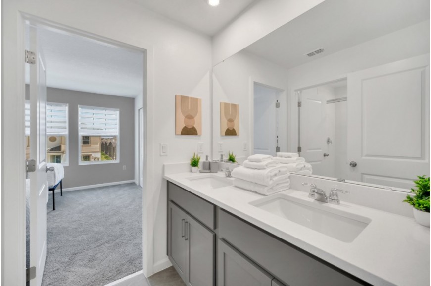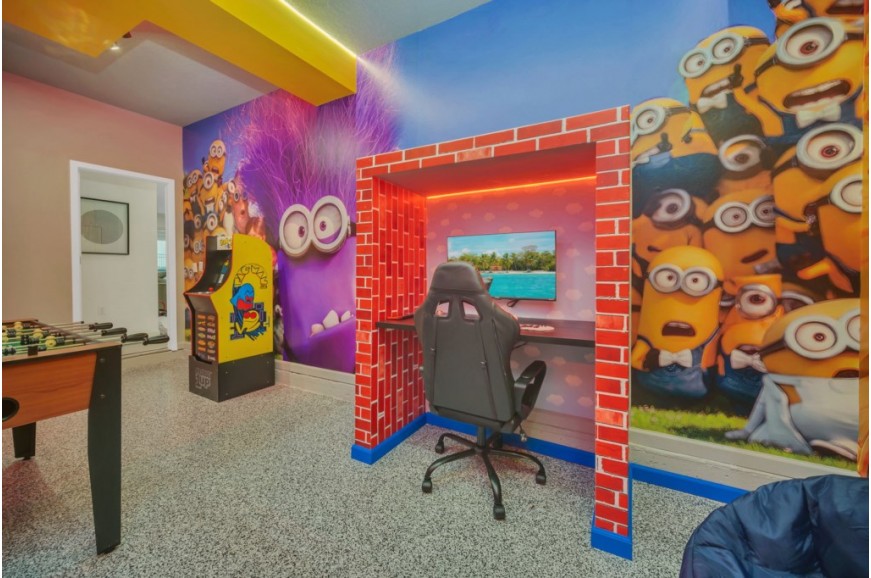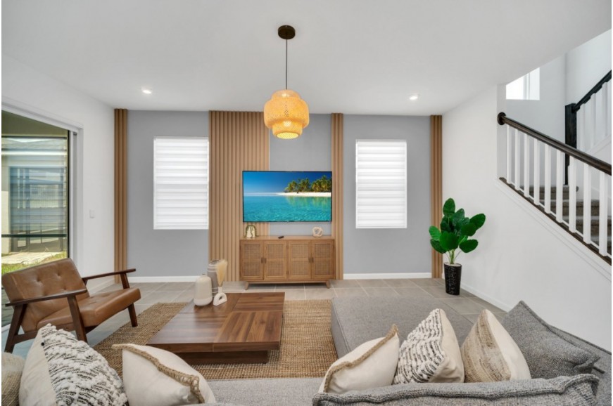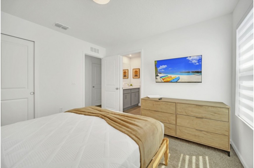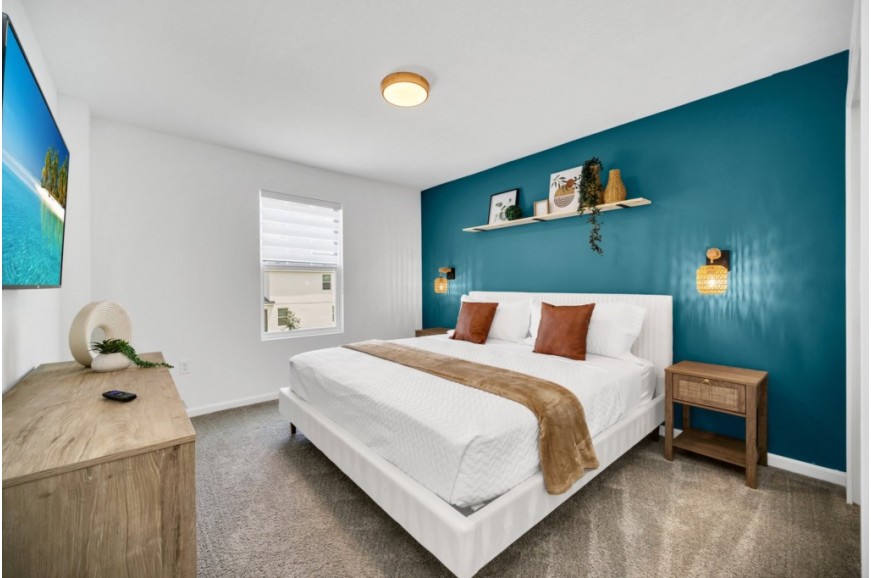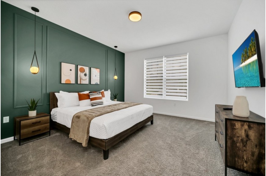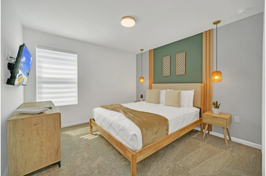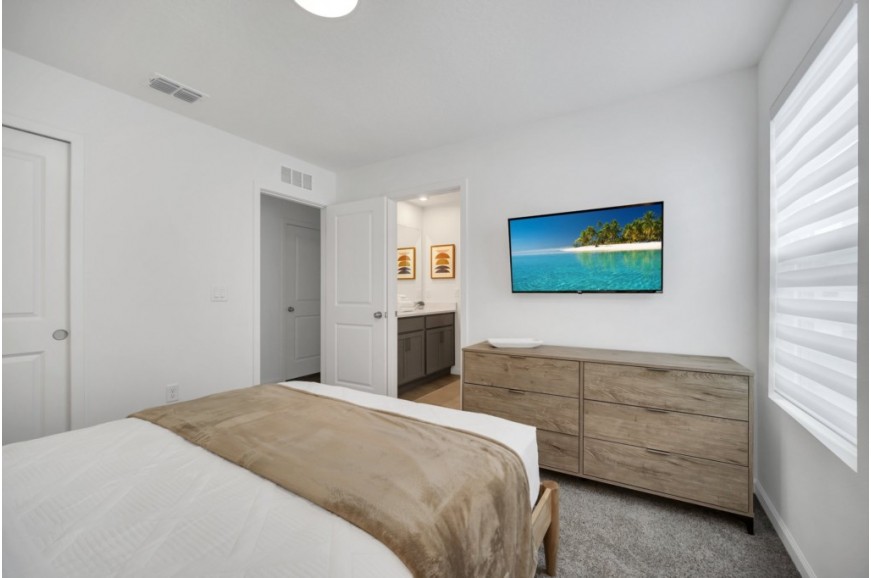 Solara Resort - Kissimmee, Florida is an upscale community currently under development just 7 miles from Walt Disney World. This gated resort community sits nestled just outside of Orlando, Florida. During your stay, you will enjoy this well-appointed home that has been designed and decorated to provide you and your family an abundance of luxury amenities and leaves you well equipped to vacation with all the usual items you would expect to find at home. The resort is only a 30-minute drive from the Orlando International Airport and is situated central to all of Orlando’s famous attractions. The resort boasts an expansive clubhouse which includes a grand pool, complete with surfing simulator, cabanas, pool bar, children's playground, sand volleyball court, basketball court, and soccer field. Inside the clubhouse sits the lounge, bar & grill, fitness center, business center, and sundries store. This spacious 6 bedroom holiday villa can comfortably accommodate a larger family or group of up to 12 people.