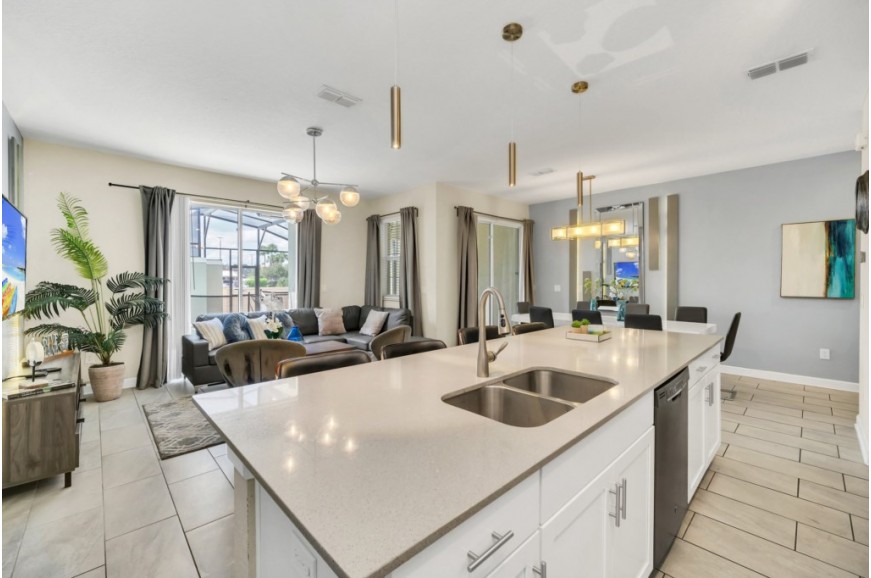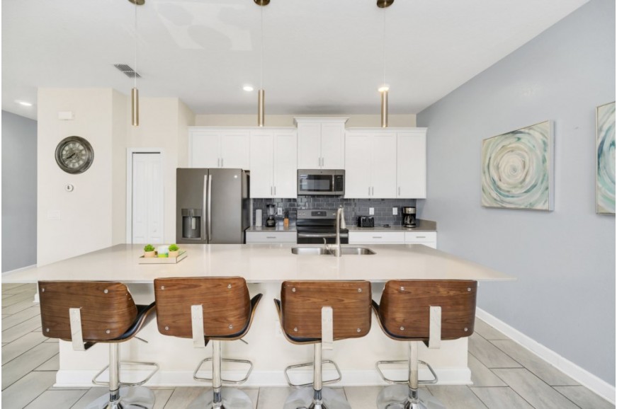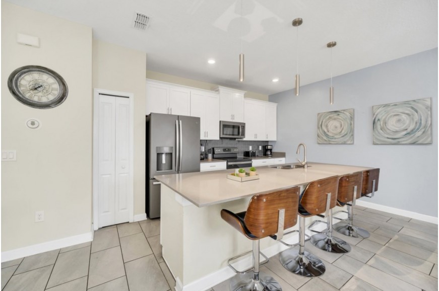 Storey Lake - Kissimmee, Florida is a brand new vacation community located just 4 miles from the magical world of Disney and just minutes to Universal, Sea World, and the many water parks in the area. Central Florida is also home to some of the nation's top-rated golf courses, and many are within a 10-minute drive of Storey Lake. The prime location lends itself to the premier shopping corridor, including the famed Millennia, top restaurants, and the world-renowned town of Celebration, inspired by Disney. Storey Lake is also a 30-minute drive from the Orlando International Airport. The resort offers the best in family fun and hosts a wide variety of amenities and activities. This spacious 4-bedroom townhome can comfortably accommodate a large family or group of up to 8 guests.