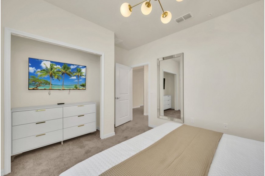 Windsor Cay Resort - Clermont, Florida is a beautiful, family-friendly resort community in a prime location. Just a short drive from Orlando's top attractions, including Walt Disney World, Universal Studios, and SeaWorld. Windsor Cay is the perfect base for your Florida getaway. During your stay, you will enjoy this well-appointed townhome that has been designed and decorated to provide you and your family with an abundance of luxury amenities and leaves you well-equipped to vacation with all the usual items you would expect to find at home. Windsor Cay Resort boasts world-class amenities, including a large resort-style pool with water slides, a splash pad, and cabanas for lounging. Guests can enjoy a fitness center, a clubhouse with a game room, sports courts, and miniature golf. Nestled in a quiet, gated community, Windsor Cay Resort combines the best of luxury and relaxation, making it an ideal destination for families, couples, and groups seeking an unforgettable vacation experience. Windsor Cay Resort has all the amenities of a five-star hotel or resort but with the comfort, convenience, and privacy of a private townhome. This spacious 5-bedroom holiday townhome can comfortably accommodate a larger family or group of up to 10 people.