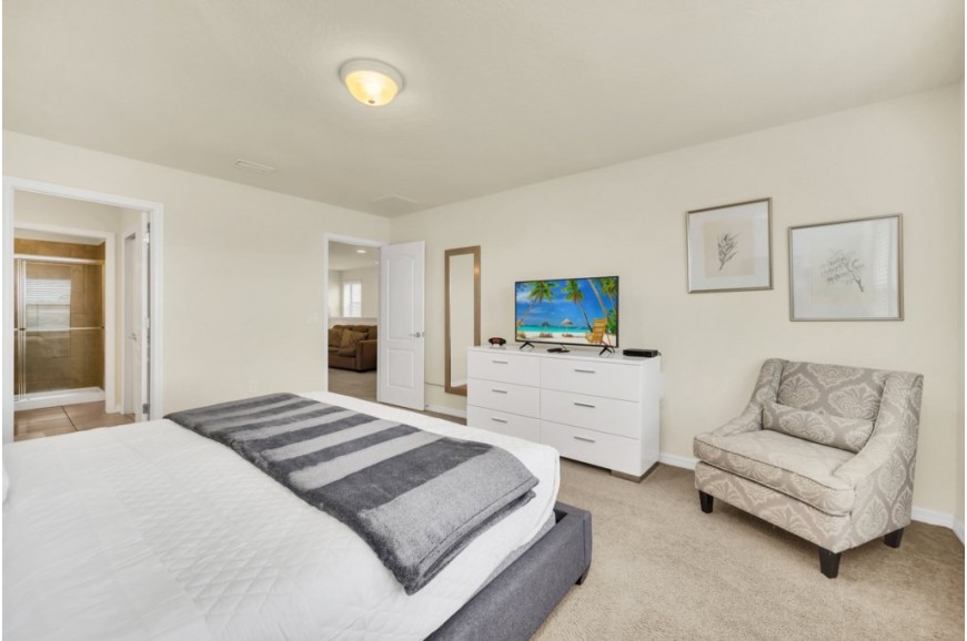 Windsor at Westside - Kissimmee, Florida is an upscale gated community located just 10 minutes from Walt Disney World. This luxury home sits nestled just outside of Orlando, Florida and has quickly become one of the most desired locations in the Orlando area. During your stay, you will enjoy this well-appointed home that has been designed and decorated to provide you and your family an abundance of luxury amenities and leaves you well equipped to vacation with all the usual items you would expect to find at home. Windsor at Westside is only a 30-minute drive from the Orlando International Airport and is situated central to all of Orlando’s famous attractions. This spacious 5 bedroom townhome can comfortably accommodate a larger family or group of up to 10 people.