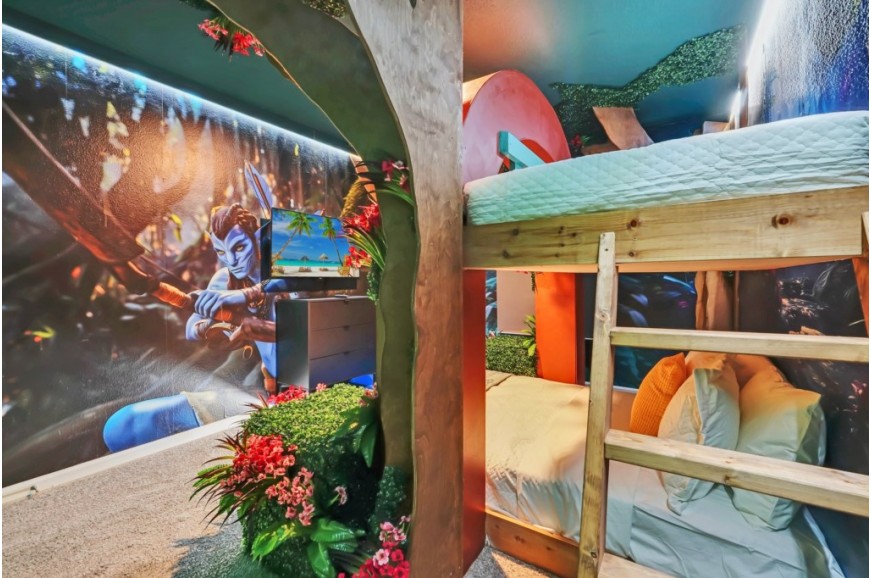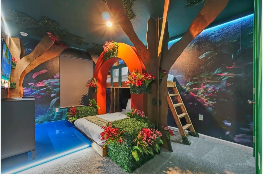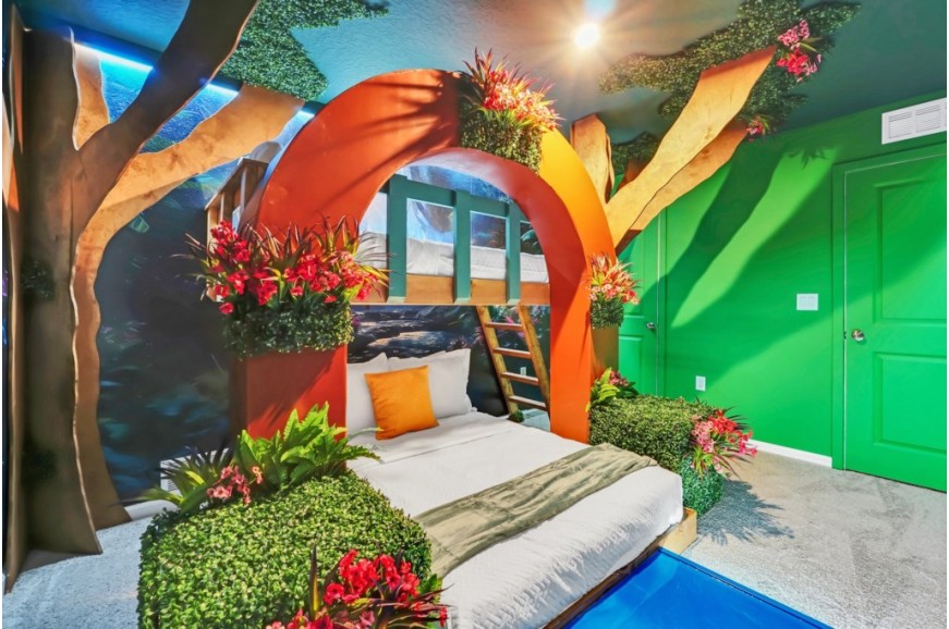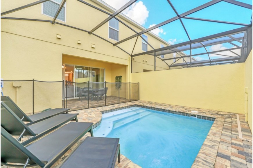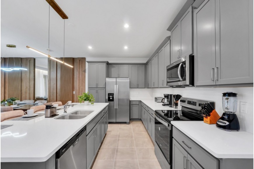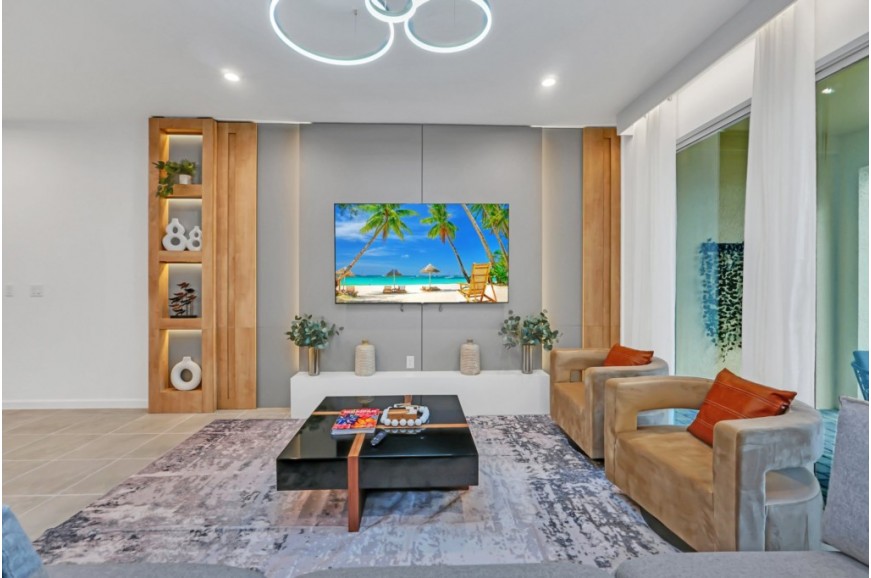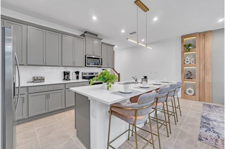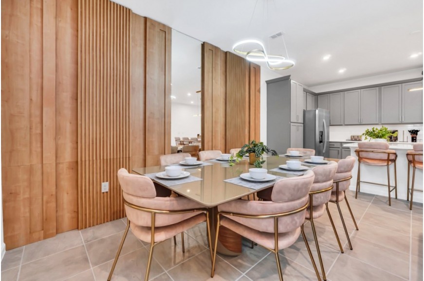 Solara Resort - Kissimmee, Florida is an upscale community currently under development just 7 miles from Walt Disney World. This gated resort community sits nestled just outside of Orlando, Florida. During your stay, you will enjoy this well-appointed townhome that has been designed and decorated to provide you and your family an abundance of luxury amenities and leaves you well equipped to vacation with all the usual items you would expect to find at home. The resort is only a 30-minute drive from the Orlando International Airport and is situated central to all of Orlando’s famous attractions. The resort boasts an expansive clubhouse that includes a grand pool, complete with a surfing simulator, cabanas, pool bar, children's playground, sand volleyball court, basketball court, and soccer field. Inside the clubhouse sits the lounge, bar & grill, fitness center, business center, and sundries store. This spacious 5 bedroom holiday townhome can comfortably accommodate a larger family or group of up to 10 people.