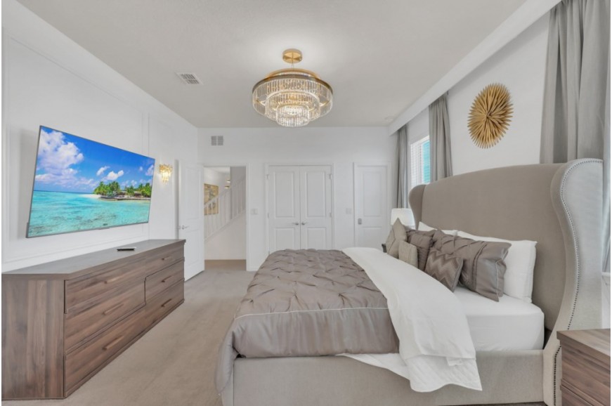 Windsor Cay Resort - Clermont, Florida is a beautiful, family-friendly resort community in a prime location. Just a short drive from Orlando's top attractions, including Walt Disney World, Universal Studios, and SeaWorld. Windsor Cay is the perfect base for your Florida getaway. During your stay, you will enjoy this well-appointed home that has been designed and decorated to provide you and your family with an abundance of luxury amenities and leaves you well-equipped to vacation with all the usual items you would expect to find at home. Windsor Cay Resort boasts world-class amenities, including a large resort-style pool with water slides, a splash pad, and cabanas for lounging. Guests can enjoy a fitness center, a clubhouse with a game room, sports courts, and miniature golf. Nestled in a quiet, gated community, Windsor Cay Resort combines the best of luxury and relaxation, making it an ideal destination for families, couples, and groups seeking an unforgettable vacation experience. Windsor Cay Resort has all the amenities of a five-star hotel or resort but with the comfort, convenience, and privacy of a private home. This spacious 10-bedroom holiday villa can comfortably accommodate a larger family or group of up to 20 people.