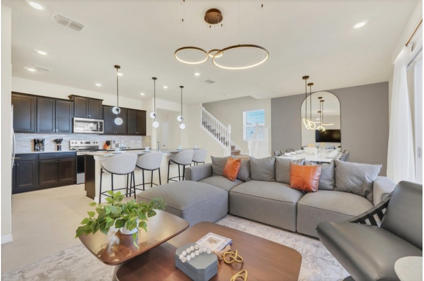 Windsor Cay Resort - Clermont, Florida is a beautiful, family-friendly resort community in a prime location. Just a short drive from Orlando's top attractions, including Walt Disney World, Universal Studios, and SeaWorld. Windsor Cay is the perfect base for your Florida getaway. During your stay, you will enjoy this well-appointed townhome that has been designed and decorated to provide you and your family with an abundance of luxury amenities and leaves you well-equipped to vacation with all the usual items you would expect to find at home. Windsor Cay Resort boasts world-class amenities, including a large resort-style pool with water slides, a splash pad, and cabanas for lounging. Guests can enjoy a fitness center, a clubhouse with a game room, sports courts, and miniature golf. Nestled in a quiet, gated community, Windsor Cay Resort combines the best of luxury and relaxation, making it an ideal destination for families, couples, and groups seeking an unforgettable vacation experience. Windsor Cay Resort has all the amenities of a five-star hotel or resort but with the comfort, convenience, and privacy of a private townhome. This spacious 5-bedroom holiday townhome can comfortably accommodate a larger family or group of up to 10 people.