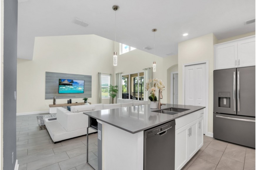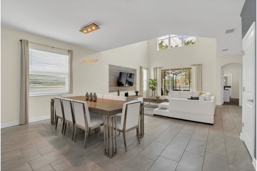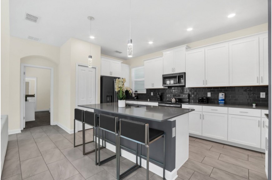 Storey Lake - Kissimmee, Florida is a brand new vacation community located just 4 miles from the magical world of Disney and just minutes to Universal, Sea World, and the many water parks in the area. Central Florida is also home to some of the nation's top-rated golf courses and many are within a 10-minute drive of Storey Lake. The prime location lends itself to the premier shopping corridor including the famed Millennia, top restaurants, and the world-renowned town of Celebration inspired by Disney. Storey Lake is also a 30-minute drive from the Orlando International Airport. The resort offers the best in family fun and is host to a wide variety of amenities and activities. This spacious 5 bedroom holiday villa can comfortably accommodate a large family or group of up to 10 guests.