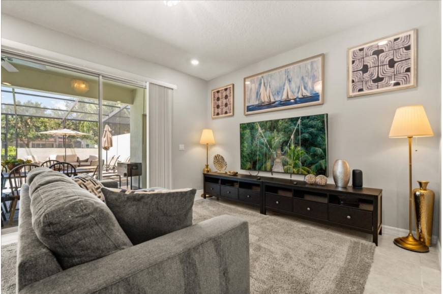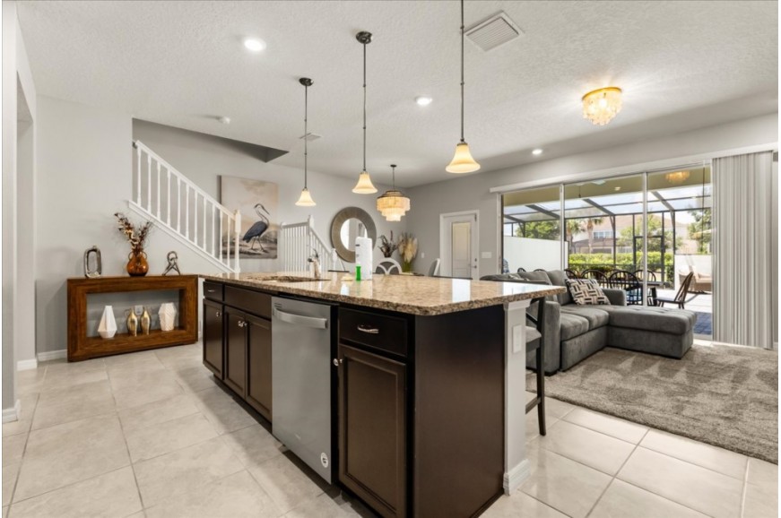 Solterra Resort - Davenport, Florida, is a paradise located only 15 minutes from the area's main attraction... Walt Disney World. This luxury resort sits nestled just outside of Orlando, Florida, and has quickly become one of the most desired resorts in the Orlando area. During your stay, you will enjoy this well-appointed home that has been designed and decorated to provide you and your family with an abundance of luxury amenities and will leave you well-equipped to vacation with all the usual items you would expect to find at home. Solterra Resort is only a 30-minute drive from the Orlando International Airport and is situated central to all of Orlando’s famous attractions. The resort amenities include a 6700 square foot clubhouse, swimming pool, spa, fitness center, business center with Internet, volleyball, tennis, children's playground, and picnic area. This spacious 5-bedroom townhome can comfortably accommodate a larger family or group of up to 10 people.