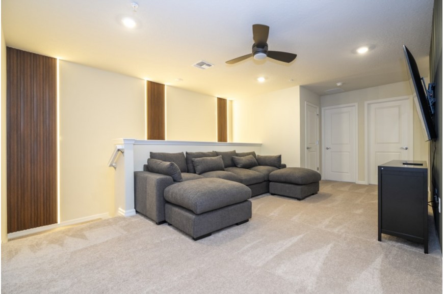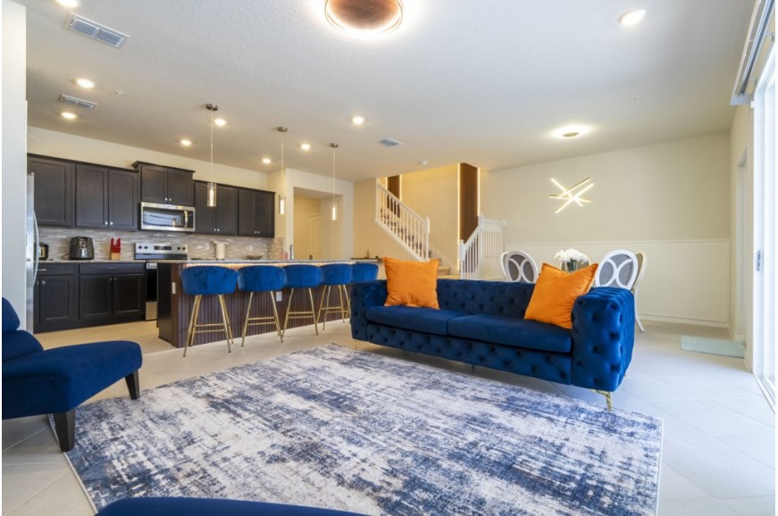 Windsor Cay Resort - Clermont, Florida is a beautiful, family-friendly resort community in a prime location. Just a short drive from Orlando's top attractions, including Walt Disney World, Universal Studios, and SeaWorld. Windsor Cay is the perfect base for your Florida getaway. During your stay, you will enjoy this well-appointed townhome that has been designed and decorated to provide you and your family with an abundance of luxury amenities and leaves you well-equipped to vacation with all the usual items you would expect to find at home. Windsor Cay Resort boasts world-class amenities, including a large resort-style pool with water slides, a splash pad, and cabanas for lounging. Guests can enjoy a fitness center, a clubhouse with a game room, sports courts, and miniature golf. Nestled in a quiet, gated community, Windsor Cay Resort combines the best of luxury and relaxation, making it an ideal destination for families, couples, and groups seeking an unforgettable vacation experience. Windsor Cay Resort has all the amenities of a five-star hotel or resort but with the comfort, convenience, and privacy of a private townhome. This spacious 5-bedroom holiday townhome can comfortably accommodate a larger family or group of up to 10 people.