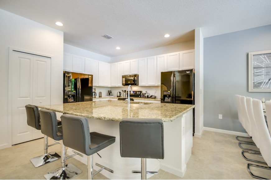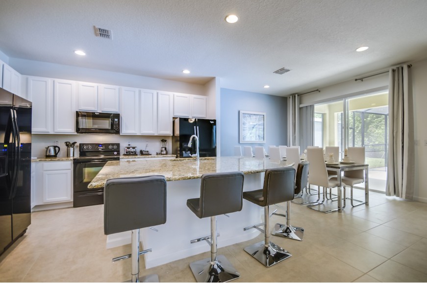 Bella Vida - Kissimmee, Florida is an upscale gated community located just 7 miles from Walt Disney World. This luxury resort sits nestled just off Hwy 192 in Kissimmee, Florida and is one of the most desired resorts in the Orlando area. During your stay, you will enjoy this well-appointed home that has been designed and decorated to provide you and your family an abundance of luxury amenities and leaves you well equipped to vacation with all the usual items you would expect to find at home. Bella Vida Resort is only a 25-minute drive from the Orlando International Airport and is situated central to all if Orlando’s famous attractions. The resorts amenities include gated community, a clubhouse with over 6700 square feet, community pool, over 15 acres of lakes, cyber cafe, arcade, basketball, volley Ball, gathering room with television, fitness room, walking Trails, picnic area, tot lot playground, bocce ball, and Italian gardens. The community pool is not heated. Bella Vida has all the amenities of a five-star hotel or resort, but with the comfort, convenience, and privacy of a private home. This spacious 8 bedroom holiday villa can comfortably accommodate a larger family or group of up to 18 people.