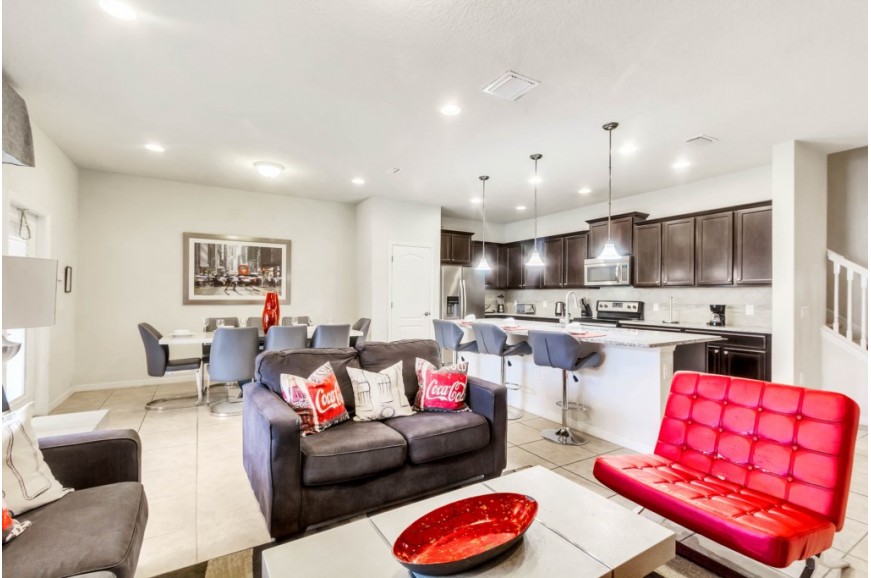Windsor at Westside - Kissimmee, Florida is an upscale gated community located just 10 minutes from Walt Disney World. This luxury home sits nestled just outside of Orlando, Florida and has quickly become one of the most desired locations in the Orlando area. During your stay, you will enjoy this well-appointed home that has been designed and decorated to provide you and your family an abundance of luxury amenities and leaves you well equipped to vacation with all the usual items you would expect to find at home. Windsor at Westside is only a 30-minute drive from the Orlando International Airport and is situated central to all of Orlando’s famous attractions. This spacious 4 bedroom holiday villa can comfortably accommodate a larger family or group of up to 8 people.