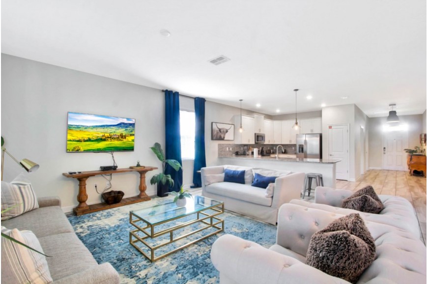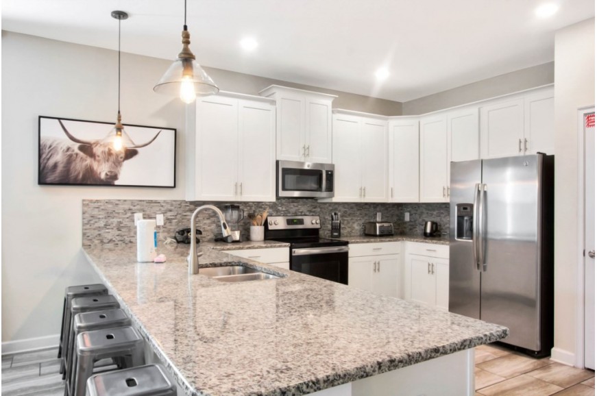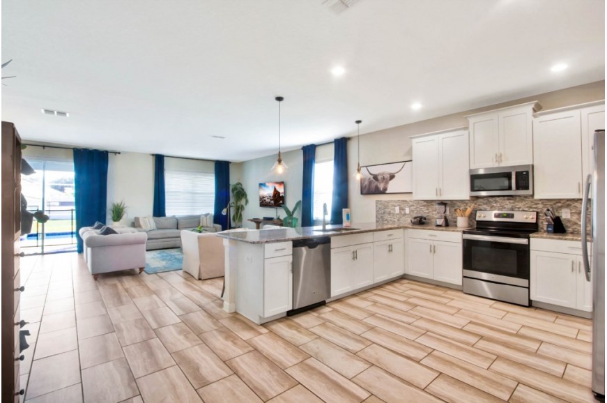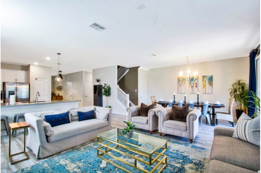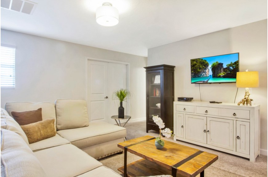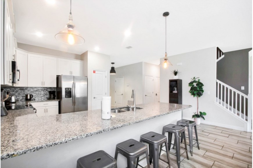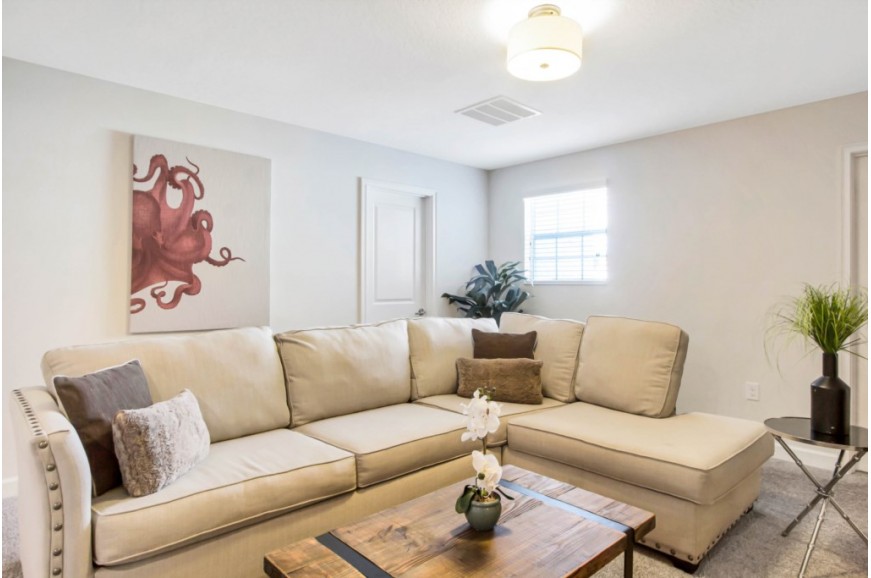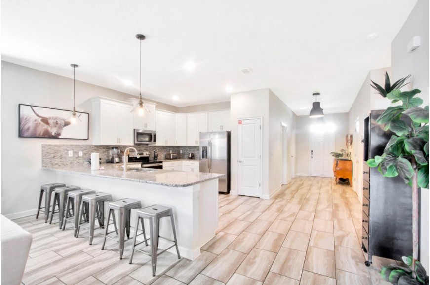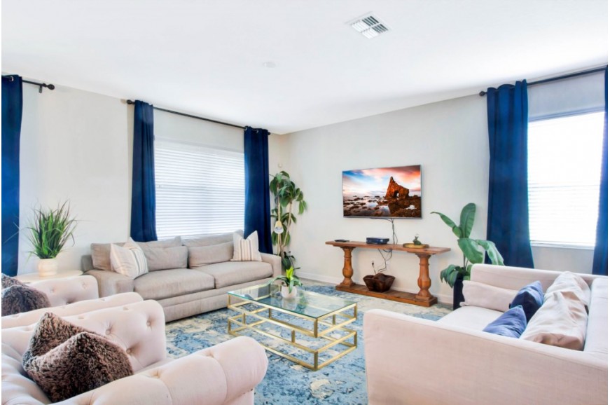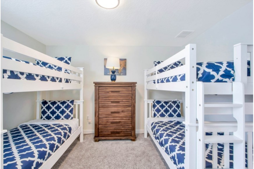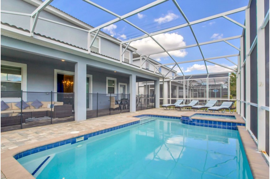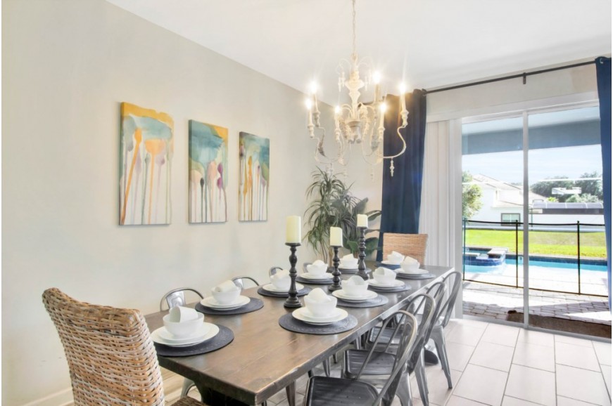 The Retreat at Champions Gate - Kissimmee, Florida is a new upscale gated resort community located just 12 miles from Walt Disney World. This luxury home sits nestled just outside of Orlando, Florida, and will quickly become one of the most desired locations in the Orlando area. During your stay, you will enjoy this well-appointed home that has been designed and decorated to provide you and your family with an abundance of luxury amenities and leaves you well-equipped to vacation with all the usual items you would expect to find at home. The Retreat at Champions Gate is only a 30-minute drive from the Orlando International Airport and is situated central to all of Orlando’s famous attractions. This spacious 8-bedroom holiday villa can comfortably accommodate a larger family or group of up to 16 people.