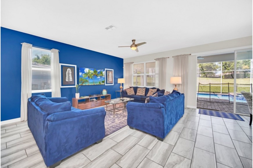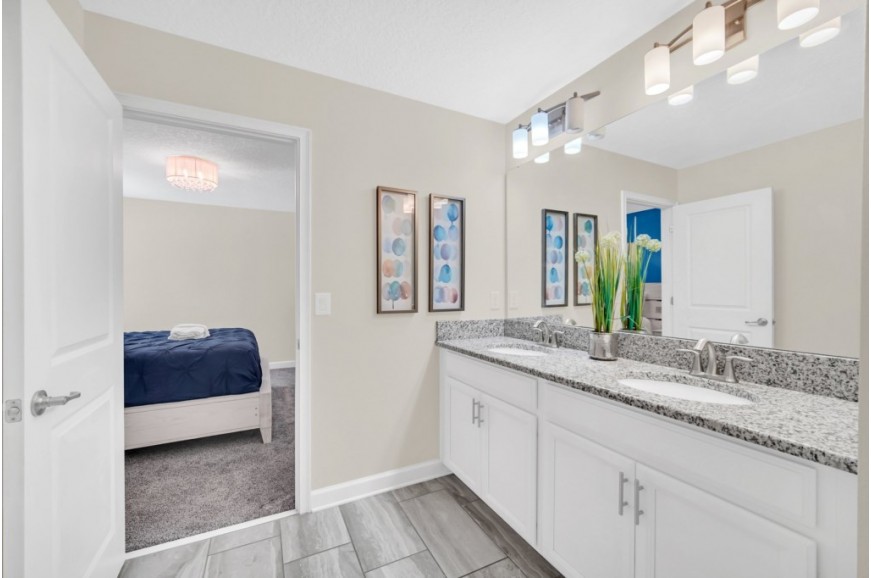 The Retreat at Champions Gate - Kissimmee, Florida is a new upscale gated resort community located just 12 miles from Walt Disney World. This luxury home sits nestled just outside of Orlando, Florida, and will quickly become one of the most desired locations in the Orlando area. During your stay, you will enjoy this well-appointed home that has been designed and decorated to provide you and your family with an abundance of luxury amenities and leaves you well-equipped to vacation with all the usual items you would expect to find at home. The Retreat at Champions Gate is only a 30-minute drive from the Orlando International Airport and is situated central to all of Orlando’s famous attractions. This spacious 8-bedroom holiday villa can comfortably accommodate a larger family or group of up to 16 people.
