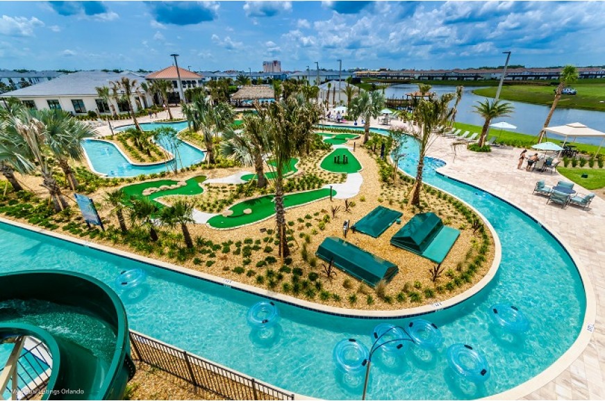 Designed for families and built for fun, Storey Lake Resort offers it all! Situated on a scenic lake with a variety of water amenities and activities including a tropical resort pool with a lazy river, two waterslides, and children's splash pad. Relax in the spa or sunbathe on the terrace and sand beach areas. Fishing, canoe & kayak rentals are available at the community dock. Enjoy a cold beverage or ice cream at the resort’s poolside café. Don’t forget to get in a game of mini-golf, volleyball or basketball. Escape the sun at the covered tiki bar or venture inside the resort’s clubhouse, which includes a guest lounge area, fitness center, and business center. Resort Disclaimer: Guests can use resort amenities, some with additional guest fees. We're not liable for closures or changes, and refunds won't be provided.