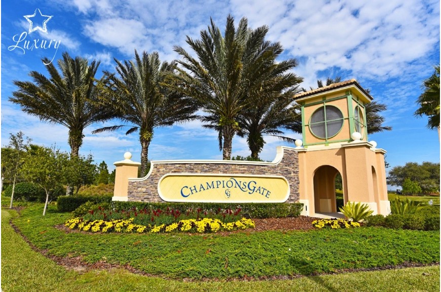 The Retreat at Champions Gate - Kissimmee, Florida is a new upscale gated resort community located just 12 miles from Walt Disney World. This luxury home sits nestled just outside of Orlando, Florida and will quickly become one of the most desired locations in the Orlando area. During your stay, you will enjoy this well-appointed home that has been designed and decorated to provide you and your family an abundance of luxury amenities and leaves you well equipped to vacation with all the usual items you would expect to find at home. The Retreat at Champions Gate is only a 30-minute drive from the Orlando International Airport and is situated central to all of Orlando’s famous attractions. This spacious 9 bedroom holiday villa can comfortably accommodate a larger family or group of up to 18 people.