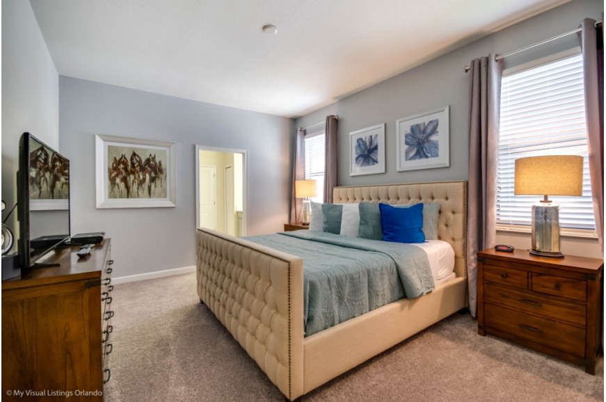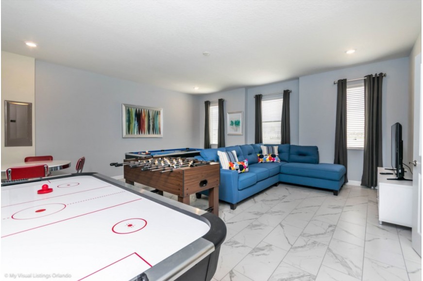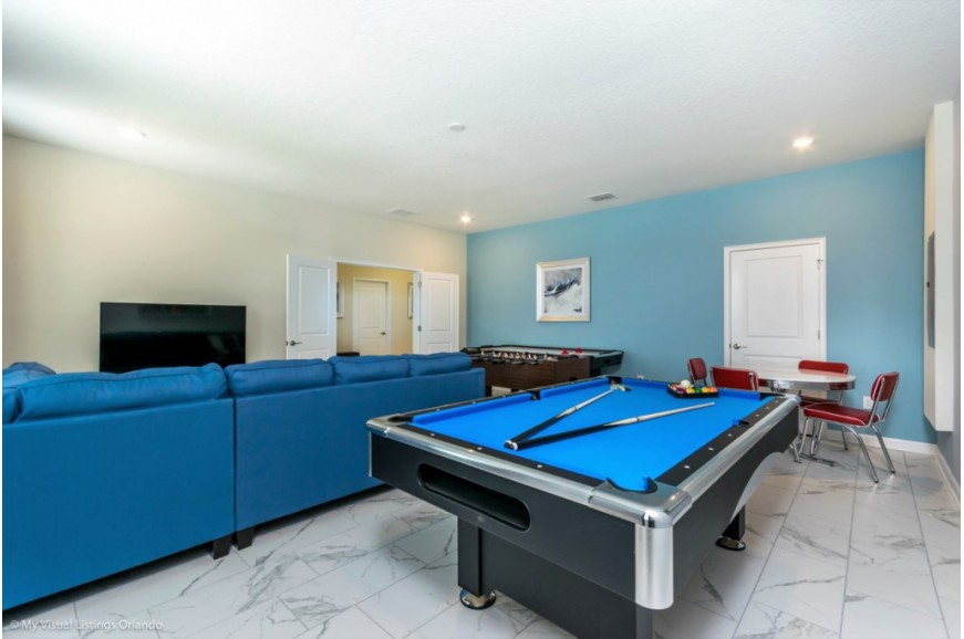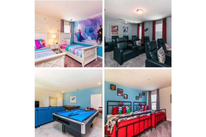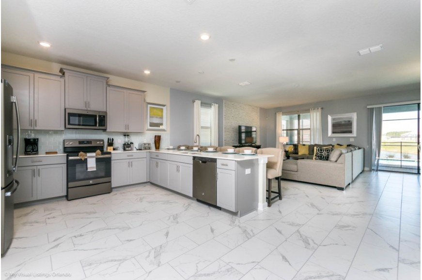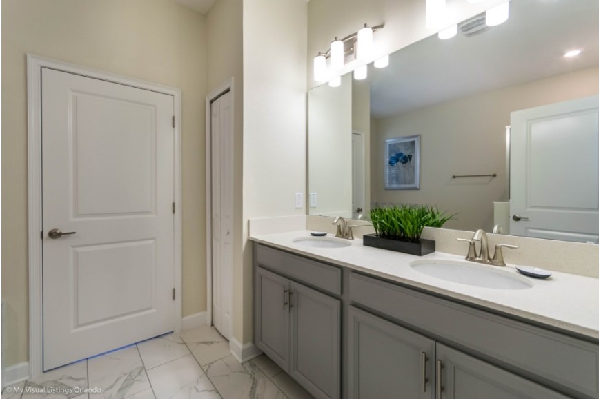 Storey Lake - Kissimmee, Florida is a brand new vacation community located just 4 miles from the magical world of Disney and just minutes to Universal, Sea World and the many water parks in the area. Central Florida is also home to some of the nation's top-rated golf courses and many are within a 10-minute drive of Storey Lake. The prime location lends itself to the premier shopping corridor including the famed Millennia, top restaurants and the world renowned town of Celebration inspired by Disney. Storey Lake is also a 30-minute drive from the Orlando International Airport. The resort offers the best in family fun and is host to a wide variety of amenities and activities. This spacious 8 bedroom holiday villa can comfortably accommodate a large family or group of up to 16 guests.