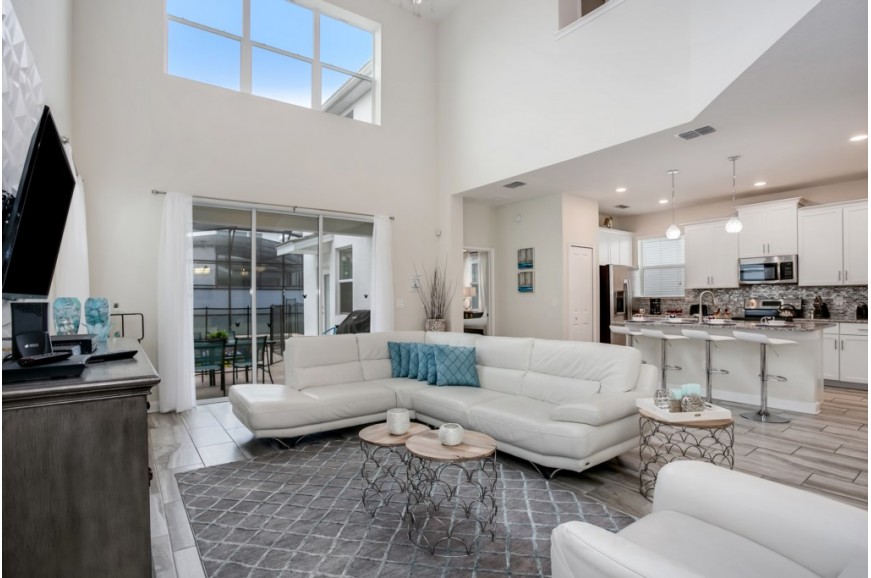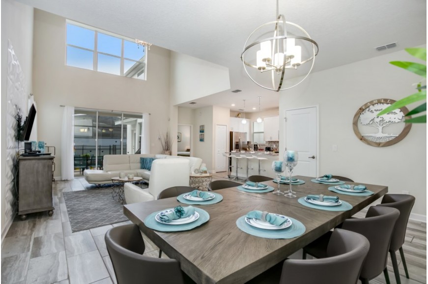 Storey Lake - Kissimmee, Florida is a brand new vacation community located just 4 miles from the magical world of Disney and just minutes to Universal, Sea World and the many water parks in the area. Central Florida is also home to some of the nation's top-rated golf courses and many are within a 10-minute drive of Storey Lake. The prime location lends itself to the premier shopping corridor including the famed Millennia, top restaurants and the world-renowned town of Celebration inspired by Disney.  Storey Lake is also a 30-minute drive from the Orlando International Airport. The resort offers the best in family fun and is host to a wide variety of amenities and activities. This spacious 5 bedroom holiday villa can comfortably accommodate a large family or group of up to 10 guests.