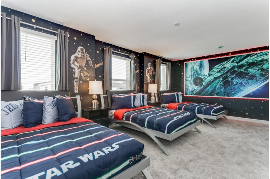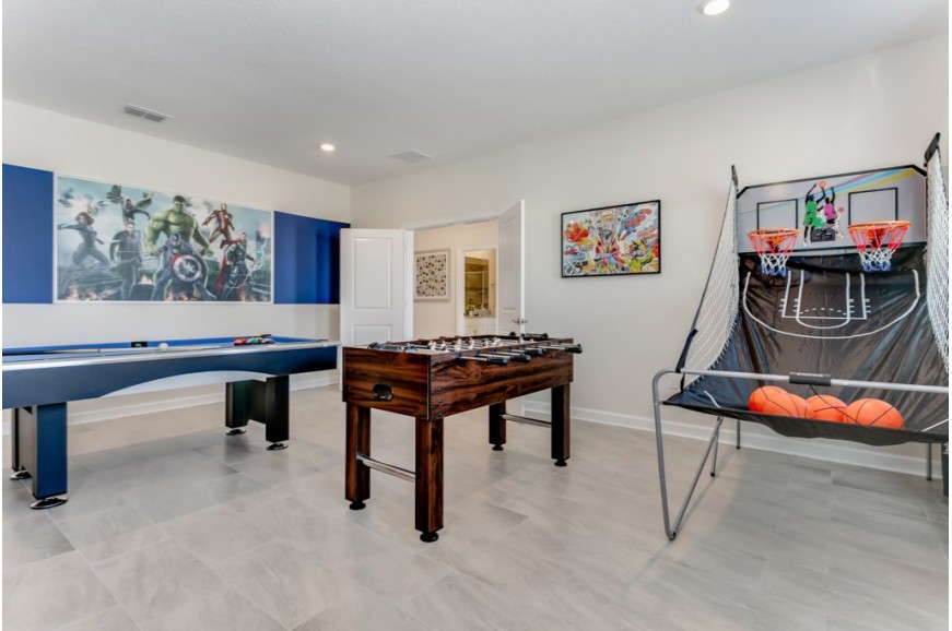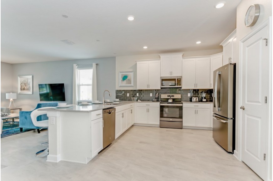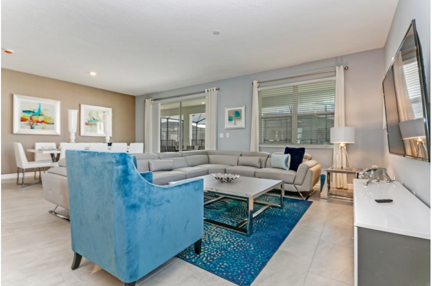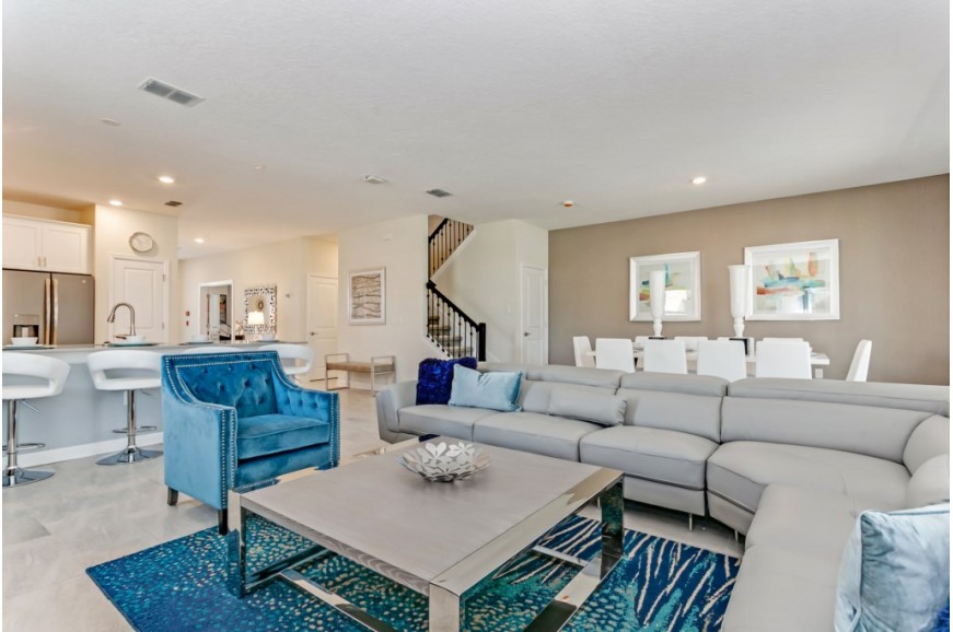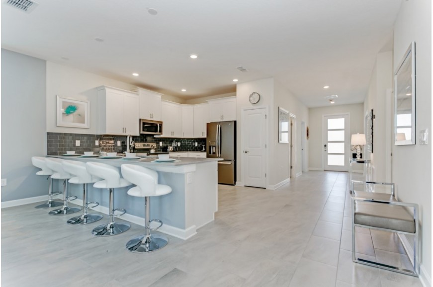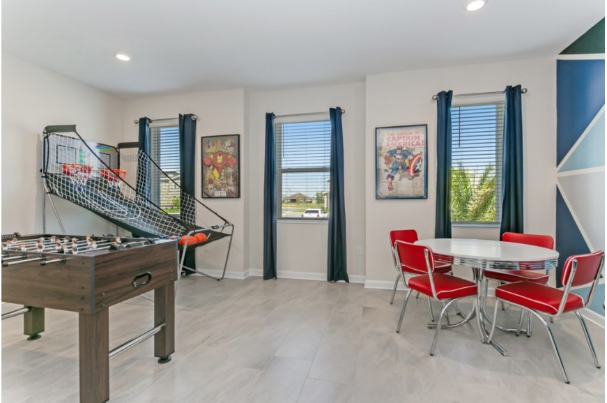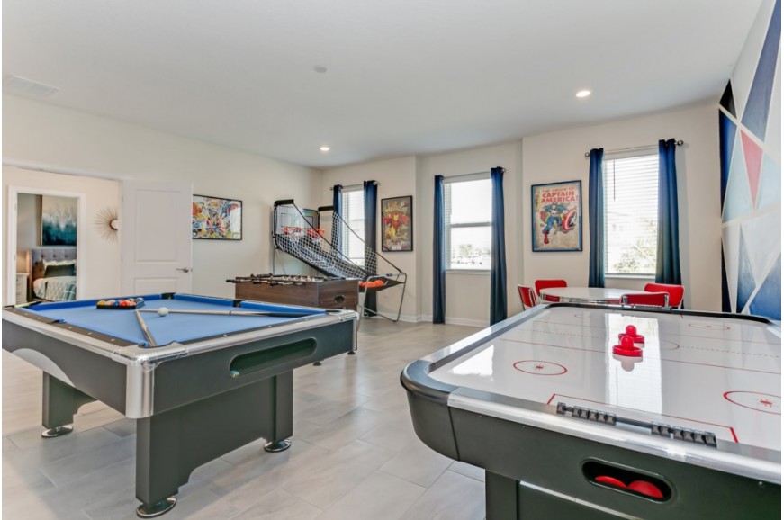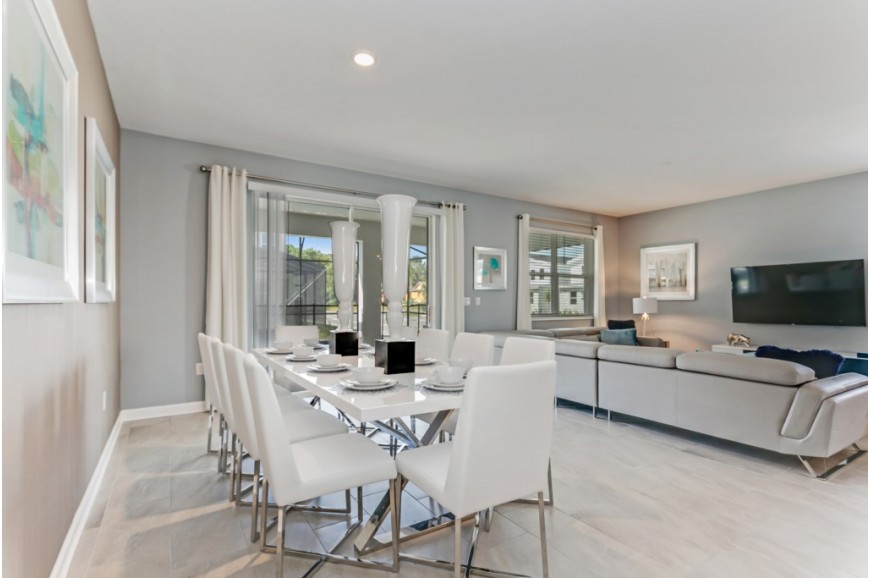 Storey Lake - Kissimmee, Florida is a brand new vacation community located just 4 miles from the magical world of Disney and just minutes to Universal, Sea World and the many water parks in the area. Central Florida is also home to some of the nation's top-rated golf courses and many are within a 10-minute drive of Storey Lake. The prime location lends itself to the premier shopping corridor including the famed Millennia, top restaurants and the world-renowned town of Celebration inspired by Disney. Storey Lake is also a 30-minute drive from the Orlando International Airport. The resort offers the best in family fun and is host to a wide variety of amenities and activities. This spacious 9 bedroom holiday villa can comfortably accommodate a large family or group of up to 18 guests.